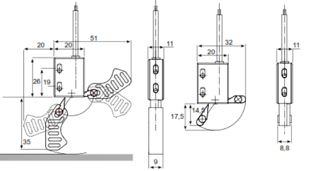26 x 20 x 11 - 3 ader NO / COM / NC wissel schakel contact - kabel 6 meter. Deze is te gebruiken voor zowel toepassing in hout, aluminium als kunststof kozijnen. Schakelaar is erosie vrij en water dicht IP68. Door de beweegbare moertjes geeft het wat ruimte bij de montage. Schakelaar is op basis van een magneetcontact en VDS klasse C toepasbaar in uw installatie. Meegeleverd twee opzet stukken om een juiste geleiding van de schoot te realiseren. Voor blok als haakschoten toepasbaar.